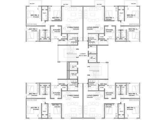 The focus of Eden sector in the 210 acre township- Godrej Garden City in Ahmedabad is its retail and recreational strip along the main road. This retail strip gains emphasis as it is stretched below the 3 premium housing towers, thereby making a bold base. Further, iterations for the Typical Floor Plan of the 3bhk premium flats are proposed such that the user is provided with a flexible small room that he can use as a lounge, study or puja etc.
