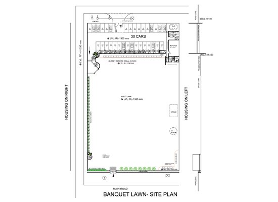 The Client was in possession of a one acre vacant plot earmarked for a housing complex. However, due to recession in real estate, the Client desired that the plot be landscaped for use as a Banquet Lawn in limited budget.
