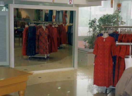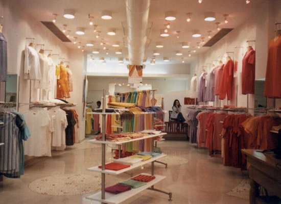 A bright white setting is created for this Indian-wear retail chain whose main business concept has been to display the entire product range as per various sizes, such that the customer can pick and choose on its own. Hence, the products effectively become a part of the interior design here, as they contribute the vital colour and vivacity to this store. Services are left exposed and lighting is entirely surface mounted- each contributing to the scheme in their own subtle way.