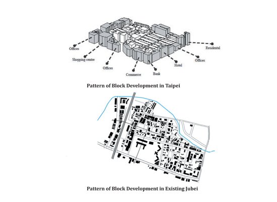 Our modified proposal for this region is based on traditional block development in neighboring cities of Taipei and Jubei. We focus on three elements that can combine together to provide a more effective urban innovation: